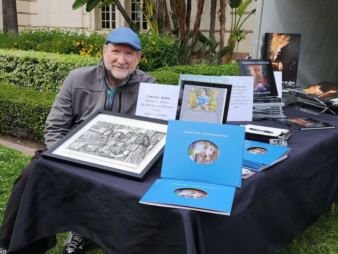Edwards newest book, My Mannequin Moment, expands on his acclaimed photographic series exploring the disconnect between artificial perfection and authentic self. Through carefully staged tableaux of mannequins and humans, Rubin invites viewers to confront the ideals we project and the truths we often suppress. The book features critical essays by art historians Betty Brown and Peter Frank, and was spotlighted at the Los Angeles Times Festival of Books.